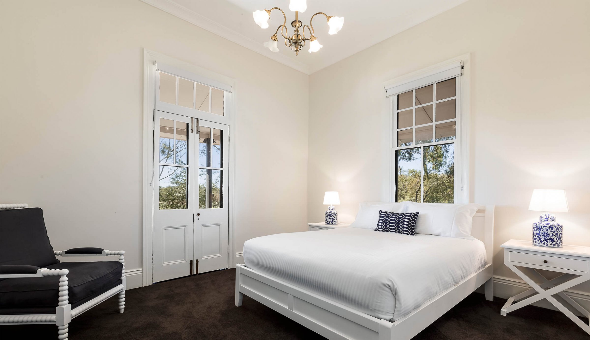 Ideal for larger groups of up to 14, The Residence features two spacious living areas; one with an open log fireplace, air-conditioning, an additional reading area, and a soaring raked ceiling, the other with a Jetmaster gas log fire, a queen sofa bed, and an abundance of games and books. The six generously proportioned bedrooms, two with en-suites, are elegantly furnished with luxurious mattresses to ensure a restful nights sleep.